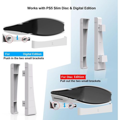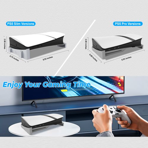 Perfect for PS5 Slim/Pro Digital & Disc versions. The stand allows you to place the PS5 Slim/Pro consoles in a horizontal position to save space, which is more stable than a vertical stand.