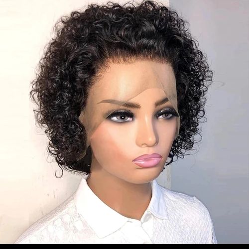 This is an all back glueless short curly 13 x1 frontal genuine hair wig. The curls are rich and long lasting. Easy to maintain with water and leave-in conditioner. unlike other factory made wigs that come with oversize wig cap, this one fits perfectly. The wig cap is of medium size and elastic which makes it a perfect fit for all head size. It also has an elastic band just incase you have a very small skull. The hair strands are very original and of best quality. Maintenance is so easy with leave-in conditioner. It's an original hair and therefore does not tangle nor shed. It can be bleached, sprayed or tinted without losing it's originality or lusciousness. Easy to comb with either a wide tooth comb.It is a glueless frontal so you don't need a glue. It gives you that expensive look cos everyone knows that full frontal wigs of original hair is not cheap. Own your style and stand out with this beautiful and true to description wig. This wig is well described to let you know exactly what you are buying. Make the right choice today. Follow our store to view other beautiful wigs of great quality and affordable prices. We sell quality at best prices.