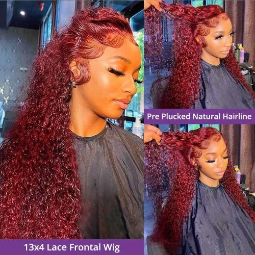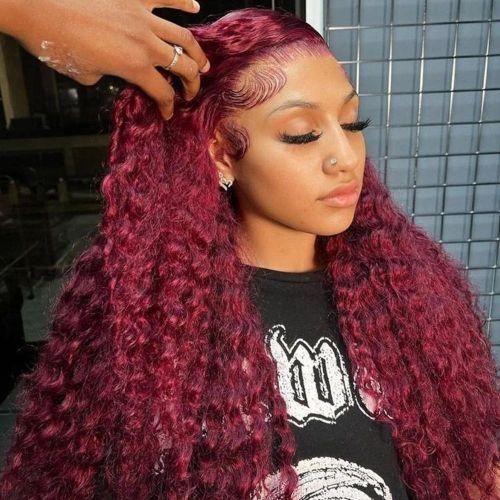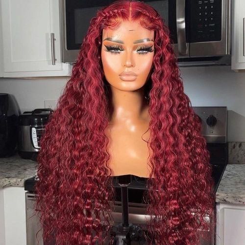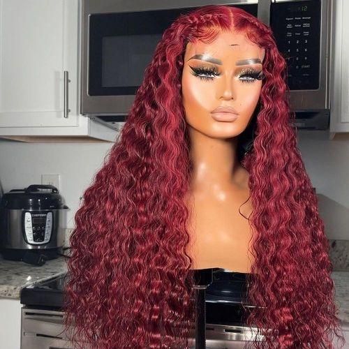 0 reviews for 99J Colored Mesh Front Woman Hair Wiggings Deep Wave Burgundy HD Transparent Mesh Wigging Cosplay Glueless Wine Red Wigging For Women