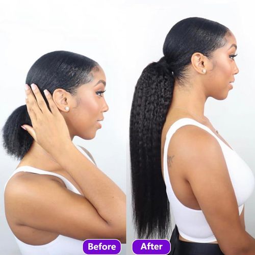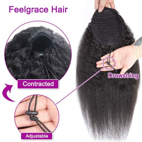 Our ponytail hair pieces / pieced feature a drawstring closure of easy wearing and adjusting. 5*5 inch natural black base with clip-in wig combs and elastic band; help you better fix the wig, not easy to shift or fall off.