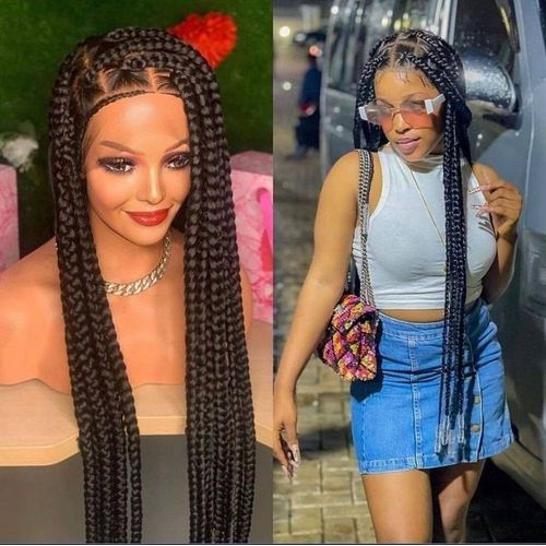 Braided wigs are the current style in vogue now. You are sure to look savvy, hot and fabulous in this piece, neatly made in an adjustable wig cap. This box braids are medium in size, full and light in weight. Perfect for times you want to protect your hair from excessive weaving. It can be styled into different beautiful styles. You should add this to your hair collection. No one will know it's a wig.