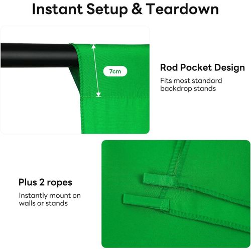 【Rod Pocket Design & Dual Hanging Ropes】The Greeen photo backdrop features a top rod pocket (7cm diameter) that easily slides onto most standard background stands, plus 2 ropes for instant wall/stand installation. Setup in seconds – no tools required