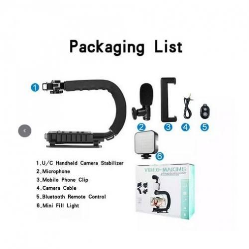 This portable kit includes a U/C handheld bracket, a mini LED light, a microphone, a phone holder and a remote control; perfect for blogs, podcasts, live broadcasts, Youtube, virtual classes and more.