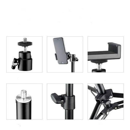 This mobile phone live broadcast holder is made of durable and non-toxic material, easy to store, and adjustable in height, suitable for mobile live broadcast.