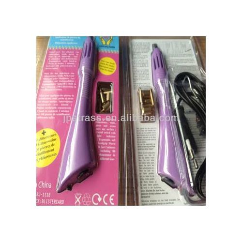 Create beautiful designs on a variety of accessories with this Rhinestone Setter Hot Fix Applicator. It is a tool that allows the user to affix rhinestones to most surfaces with ease. This stone or rhinestone setter tool includes one wand with an on / off switch, a stand for cooling and tips, which are for crystals and for studs.