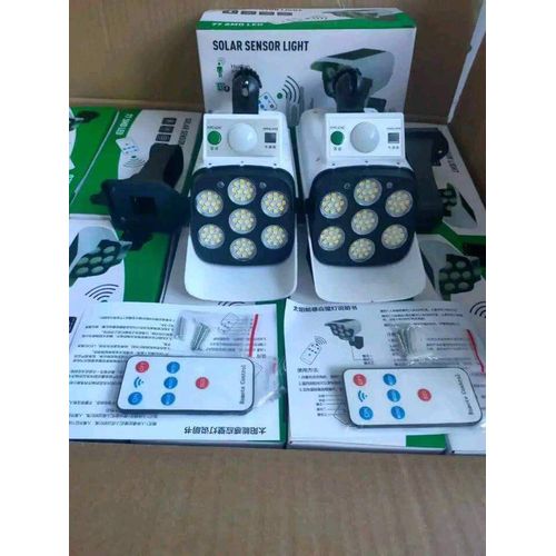 Solar Light With 77 Bright LEDs, motion-activated. Plus realistic dummy camera, when the light on at night, the small red light will flash periodically to serve as a warning.