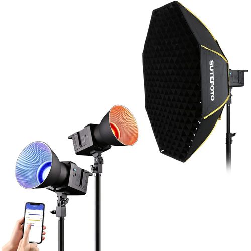 Powerful Continuous Output Lighting Sutefoto P100W RGB Light Full Color Light & COB & RGB Beads to provide ultra-high brightness up to 43700 lux/0.5m. Stable light source brightness 0%-100% adjustable. For outdoor shooting,