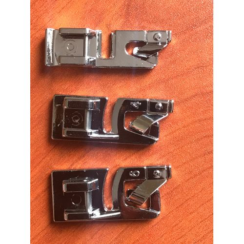 A set of 3 No Rolled Hem presser foot for domestic sewing machine. The foot are snap on rolled hem presser foot suitable for all domestic sewing machine with snap on adapter.