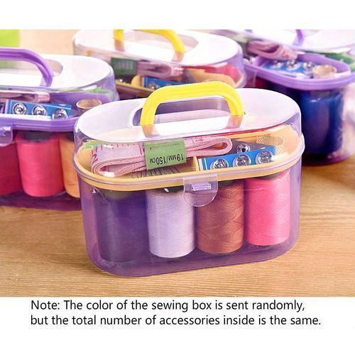 From the Manufacturer: Name: Multi-function home sewing box setMaterial: plastic + stainless steel + cotton threadDimensions: length 14.5 cm + width 7 cm + height 10 cm (manual measurement, there will be errors)Weight: 150gColor: color is randomly sentUses: high-quality PP transparent outer box, the contents are clear at a glance, all kinds of sewing small parts 10 sets, the small parts for sewing complement are complete.