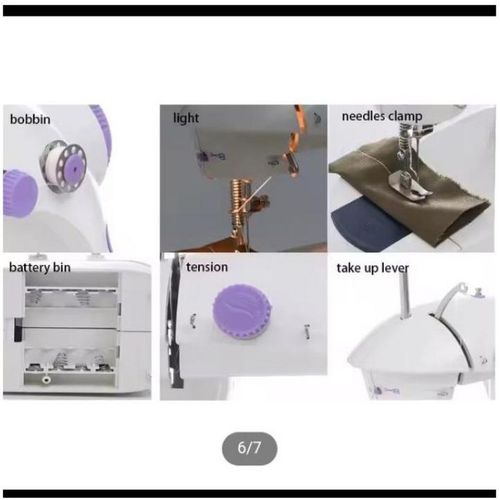 Complete accessories Mini sewing machine with foot pedal, light bulb for work up, built-in thread cutter, no scissors required.