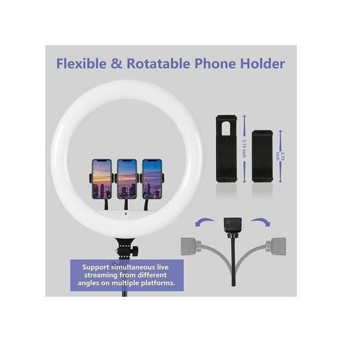 Ø 3-color modes Lighting:With 3-color modes (warm, cool, and natural light) and 10 levels of brightness adjustment, the large-sized ring light meets all your diverse needs on various occasions. The curved lamp cover enables the bulbs to give off diffuse light that causes no harm to your eyes while brightening up your face evenly, thus presenting your beauty or product details clearer in your live streaming