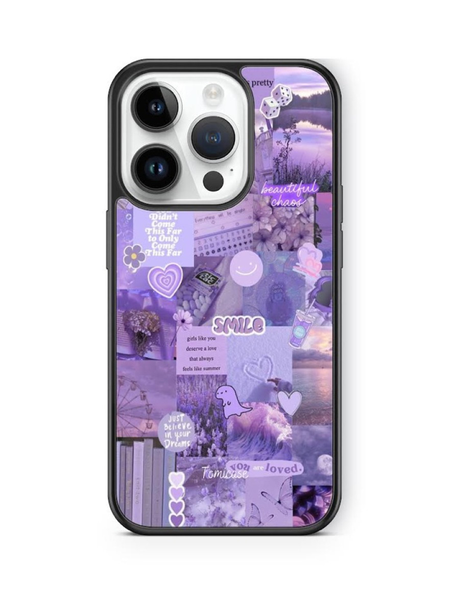 The *Purple Collage Case* is a trendy and artsy blend of style and protection. Featuring a beautiful mix of aesthetic purple-themed graphics, text, and patterns, this case adds a unique personality to your phone. Crafted from durable, high-quality material, it provides reliable protection against scratches, bumps, and everyday drops. Lightweight and slim, it fits perfectly in your hand or pocket while making a bold style statement. Ideal for lovers of all things purple and pretty!
