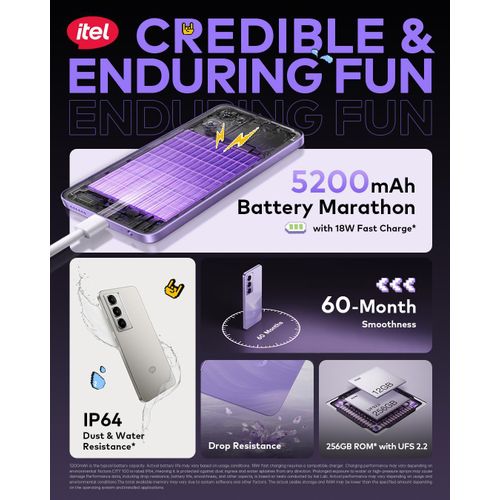 0 reviews for itel City 100 7.65mm" Slim Design 5200mah Android 128/4+8gb Purple