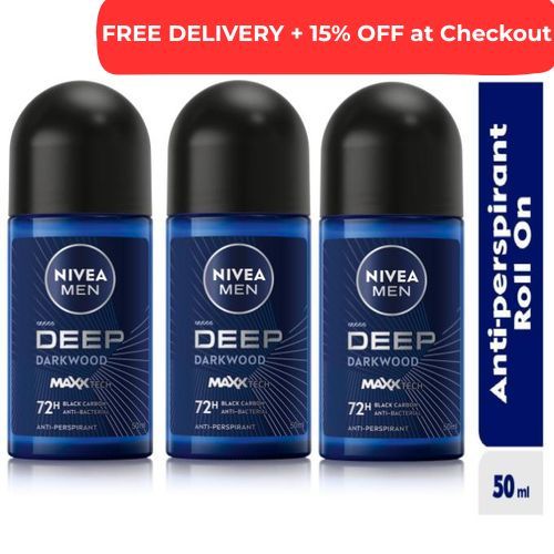 NIVEA MEN Deep darkwood anti-perspirant roll-on offers reliable 72-hour anti-perspirant protection that cares for your skin. The formula with Black Carbon and MAXXTECH provides powerful protection against bacteria and a long-lasting fragrance with the scent of dark wood.
