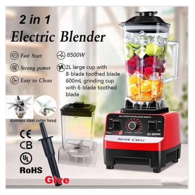 This Silver Crest Germany Commercial Grinder blender 8500W With Extra Mill Jar is suitable for hard foods and crush even ice. it is specially made for food smoothening and has the ability to crush the seed of tomatoes to fine paste. it can be used for nuts, beans, maize, tomatoes, pepper.
