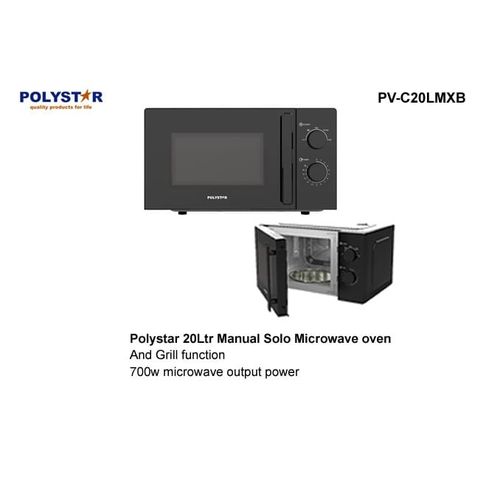 Introducing the Polystar 20 Litres Manual Solo Microwave (PV-C20LMXB) in sleek black. This sophisticated kitchen appliance is designed to meet all your cooking and heating needs with ease and efficiency.