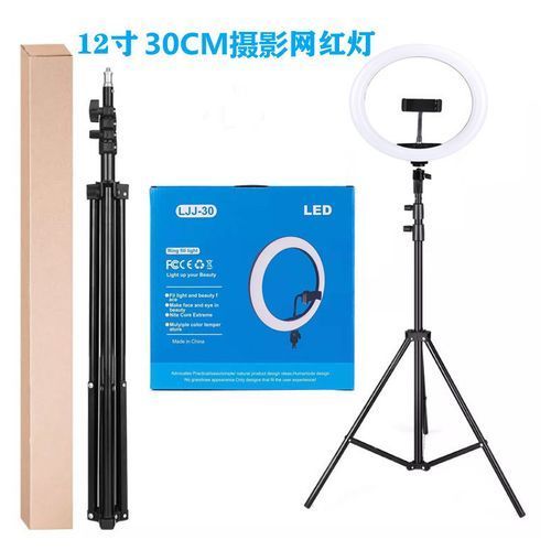 12” led ring light comes with tripod stand and a phone/camera holder.