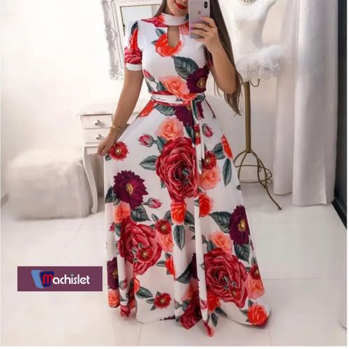 0 reviews for Machislet Daily Wear With Women Casual Long Dress Short-sleeved Evening Dress- Multi