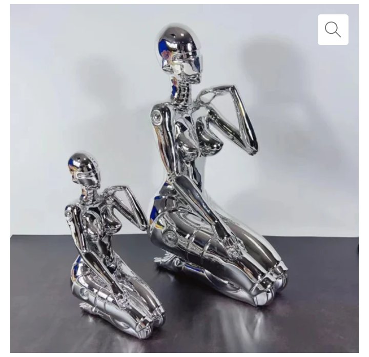 Add a futuristic edge to your space with the *Kneeling Robotic Figurine* — a striking decor piece that blends modern art with sci-fi inspiration. Designed with intricate mechanical details and a dynamic kneeling pose, this figurine symbolizes strength, resilience, and innovation. Its metallic finish and bold form make it a perfect statement piece for shelves, desks, or display units. Ideal for tech lovers and modern interior aesthetics, this figurine adds personality and intrigue to any room.