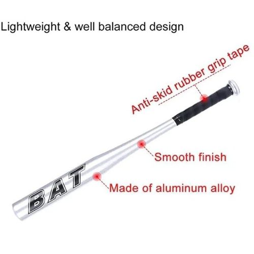 A baseball bat is a smooth metal bat used in the sport of baseball to hit the ball after it is thrown by the server. By regulation it may be no more than 2.75 inches in diameter at the thickest part and can be used by professionals and non-professionals.