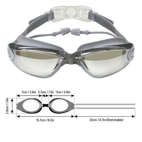 Description:The integrated electroplated swimming goggles and earplugs are perfect for outdoor water sports. It has excellent anti-fog and UV protection, providing you with excellent visibility and eye protection underwater. Ergonomically designed with soft silicone, it fits perfectly and never leaks. The quick release buckle ensures an easy fit and the included case greatly protects your goggles from breaking. Enjoy water sports with our swimming goggles!FEATURES: [ANTI-FOG COATING] The electroplated swimming goggles feature advanced anti-fog technology that prevents the lenses from fogging up and provides you with excellent visibility underwater. NOTE: Please do not rub the inner lenses to avoid damaging the anti-fog coating, just rinse with water. [EYE PROTECTION] Swimming goggles filter out harmful rays and light from the sun, lake or ocean, providing better eye protection for outdoor swimming, triathlon, surfing, kayaking and other water sports. [NO SPILL SILICONE] Soft and flexible silicone gaskets distribute pressure evenly around your eyes and provide a perfect fit to avoid water entry. [Swimming Goggles with Ear Plugs] The ear plugs are attached to the goggles to prevent water from leaking into your ear canal. You don't have to worry about losing the earplugs.