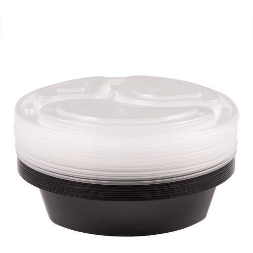 Their premium look and ease of use encourages healthy eating and cooking your meals at home. These meal prep containers are made from BPA, PVC and Phthalate free materials and are 100% food safe. Easy opening is achieved with convenient flaps whilst keeping these meal storage containers watertight and leakproof when closed. These lunch containers with portion control help you stick to your diet plan and lose weight. The food prep storage containers can also be used as office meal containers and school lunch boxes. These round food containers are incredibly stable and durable It is not recommended for use in a microwave with a wattage output of higher than 800 Watts. A microwave set higher than 800 watt may damage the container.