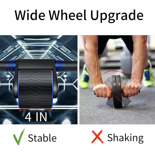 About this product:Beginner's best friend: The abdominal fitness wheel adopts a wide double-wheel design, which is more stable than a single wheel. It has a built-in automatic rebound spring, which requires less strength and balance, and is suitable for beginners and fitness enthusiasts.COMPACT AND POWERFUL: Don't let its small size fool you. The abdominal fitness wheel is compact and powerful, allowing you to exercise anytime and anywhere, whether you are at home, in the gym or even in the office. By combining different poses, you not only tone your abs, but also the muscles in your arms, back, b-utt and legs, guaranteeing a full-body burn!GUARANTEED SAFETY AND DURABILITY: Our abdominal exercise equipment features a sturdy and secure three-point support structure, thanks to the stainless steel shaft integrated into the handle and the double wheels. This design ensures safe and smooth operation, even when handling heavier weights. Rest assured, our ab wheel is designed to last.PREMIUM MATERIALS: Say goodbye to slippery handles! Unlike other ab wheels with plastic handles, our ab wheel features sweat-absorbent foam handles that provide a comfortable and secure grip during workouts. Additionally, the built-in quiet rebound spring combined with the included knee pad accessory provides a pleasant, noise-free workout experience perfect for home use.