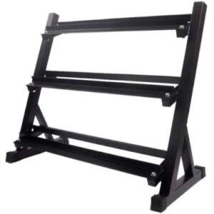 It has three angled tiers that fit various dumbbell sizes and styles and is made with a sturdy steel frame with a powder coat finish.