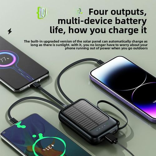 0 reviews for Mini Solar Power Bank 20000mAh with Built-in Cable - High-Capacity Emergency Portable Charger (Wholesale)