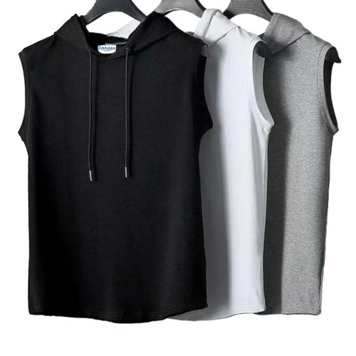 0 reviews for Danami Pack Of 3 Plain Sleeveless Hooded T Shirt- Black White & Ash