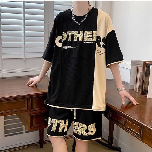 Men's short-sleeved t-shirt + shorts 2 pieces, fashionable and handsome sports suit for teenagers and male students