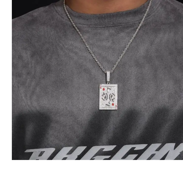 Bold and striking, the King of Aces Moissanite Necklace is crafted in high-quality 925 sterling silver, offering lasting shine and durability. The pendant features a distinctive design accented with brilliant moissanite stones, precision-cut to maximize sparkle and fire. Perfect for making a statement on special occasions or adding a touch of luxury to everyday wear, this necklace combines modern sophistication with timeless elegance. Lightweight and versatile, it brings a radiant and stylish flair to any jewelry collection.