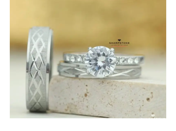 The Resa Criss Cross Bridal Set with Criss Cross Titanium Male Band is a beautifully coordinated his-and-hers collection. The women’s engagement and wedding rings are crafted in high-quality 925 sterling silver and feature sparkling moissanite stones, precision-cut to maximize brilliance and fire. The Criss Cross Titanium male band offers strength, durability, and a sleek contemporary design. Perfect for weddings, engagements, or special occasions, this complete set blends timeless elegance with modern sophistication, symbolizing love and commitment.