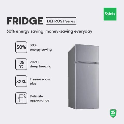 The Syinix 212L Defrost Fridge keeps your food fresh, preserves nutrients, prevents bacterial growth with deep freezing, and promotes safe, organized, and healthy storage - all while saving energy.
