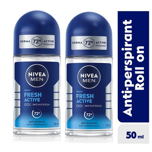 NIVEA MEN Fresh Active anti-perspirant Roll-on For Men 72h - 50ml (Pack of 2)