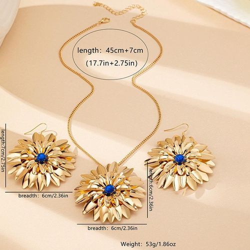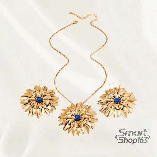 1x Sunflower - Shaped Gold Jewelry Set with Blue Accents