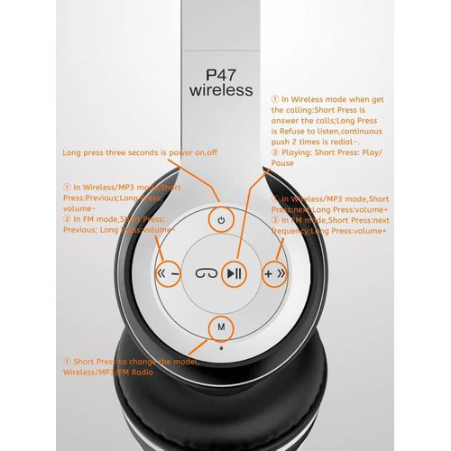 Enjoy the perfect combination of high-quality sound and portability! The P47 wireless Bluetooth headphones are designed for heavy bass lovers, delivering deep, powerful bass with a convenient foldable design for easy carrying.