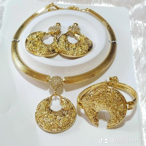 ake your outfits from ordinary to extraordinary with the important extras, make the right statement and hit your preferred style note with necklaces that frame your face, earrings that grace your ears, bracelets that sit daintily on your wrists. This accessories are perfect updates to your dressing.This Jewelry Set is sure to stand you out of a crowd with its classic design. Its consists of a necklace, ring, bangle/bracelet and a pair of earrings. Each piece can be rocked by itself to achieve the desired look.An easy and classy look; this lovely jewelry set is good to go anytime anywhere. Fashioned in smooth design, this beautiful collection is one fantastic way to accessorize as a person of style and taste. It can help you make any outfit look fresh and exciting. Give that extra spice to your outfit with this classy jewelry. This gorgeous statement necklace for ladies and women. It comes in 4 piece that will bring out the uniqueness of your outfit, we got you covered anytime any day.