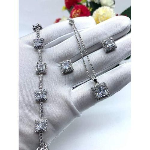 0 reviews for Quality Silver Stylish Female Necklace + Bracelets & Ear-ring Set Of Jewelries