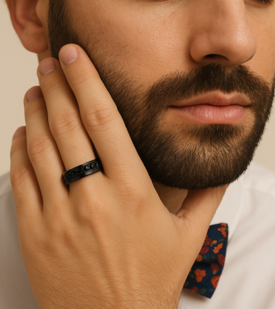 With its substantial feel and scratch-resistant surface, the Valiant band is built for everyday wear and timeless symbolism, perfect for weddings, anniversaries, or making a strong personal style statement.