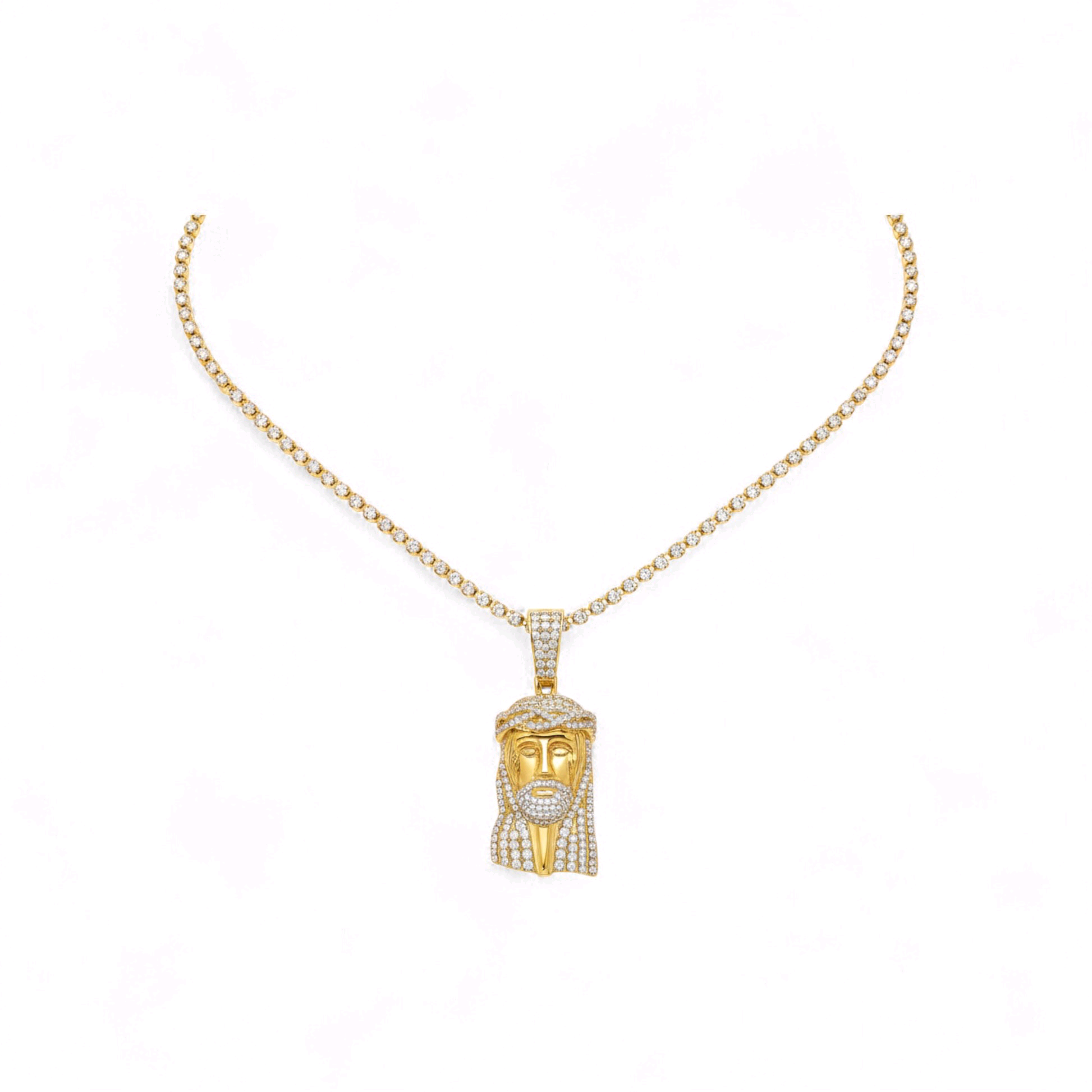 A powerful expression of faith and craftsmanship, the Jesus Diamond Pendant Necklace is a radiant symbol of devotion, strength, and divine presence. Masterfully crafted in solid 18KT gold, this striking pendant features an intricately detailed portrait of Jesus, fully encrusted with hand-set natural diamonds that shimmer with heavenly brilliance.
