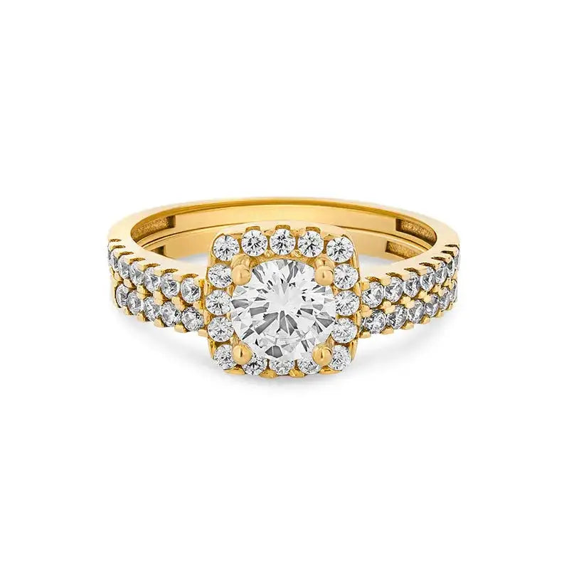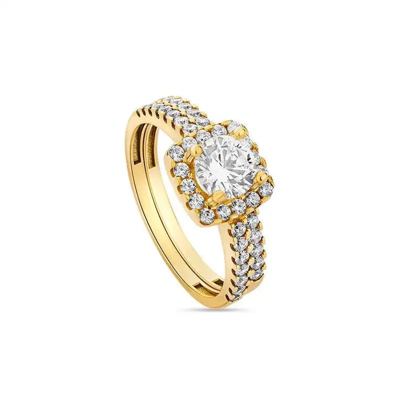 Yara 9kt gold bridal set consisting of an engagement ring and matching wedding band for the bride.
