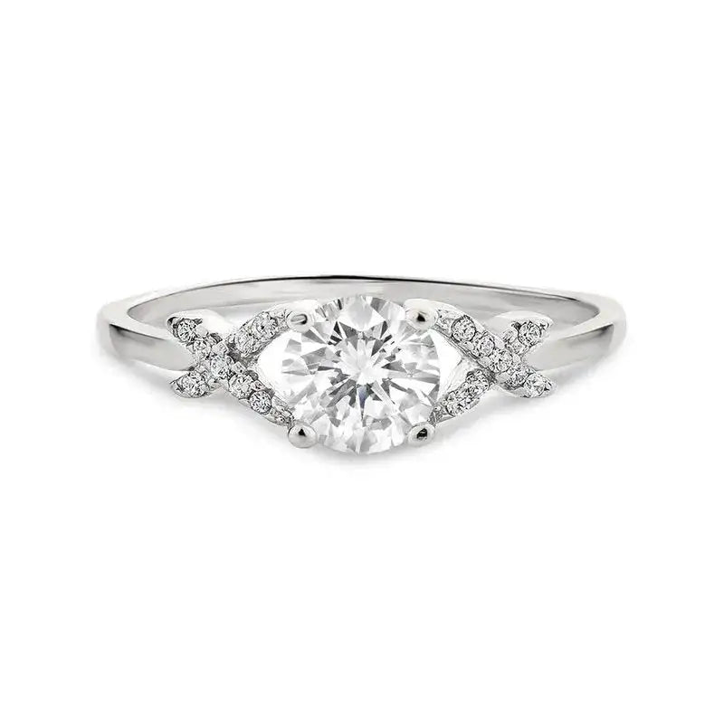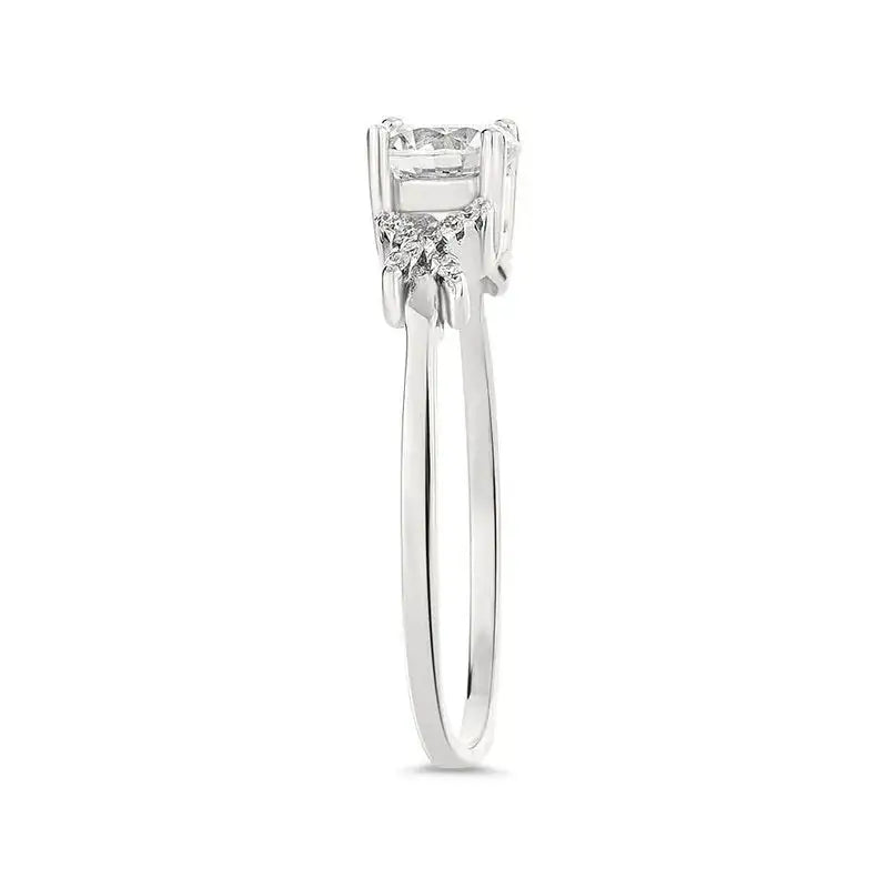 The Rosetta sterling silver bridal set exudes a timeless, classic elegance, featuring a unique split-shank and single solitaire round-cut center stone that is alluringly dainty. Perfect for any bride-to-be, this sterling silver ring adds a touch of sophistication and luxury to all who wear it.