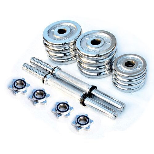 The dumbbells set come with Round Plates 25mm Diameter one set include 0.5kg x4, 1kg X4, 2KG X4, AND TWO 25MM Bars.
