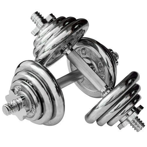 The dumbbells set come with Round Plates 25mm Diameter one set include 0.5kg x4, 1kg X4, 2KG X4, AND TWO 25MM Bars.