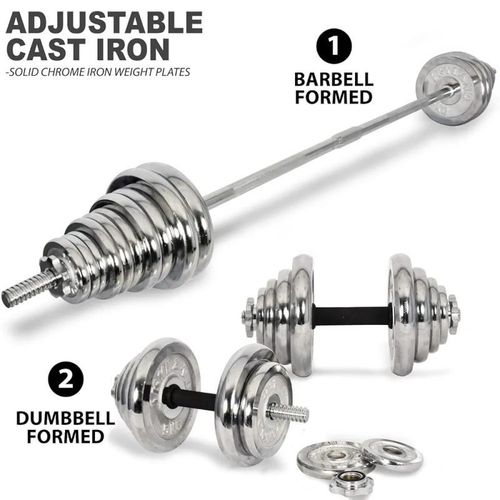 From the Manufacturer: <ul><li>Chrome iron weight plates fit 1-inch standard bar: Accommodate all standard 1-inch handles. Durable chrome iron plates covered with silver paint finish preventing rust and corrosion for lifetime use.</li></ul>