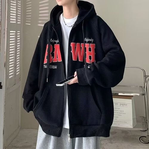 In this vibrant season, let's put on this black zippered hooded sweatshirt together, showcasing the fashionable charm of men and embarking on our own exciting journey. Come and shop now, let fashion accompany you!