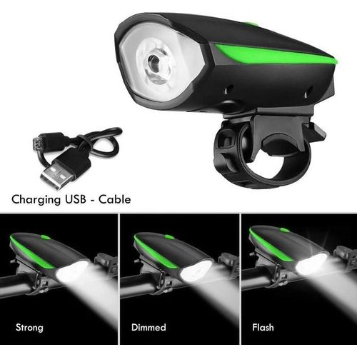 No matter what type of riding you do, this rechargeable bike light can adapt to your needs. It has 3 lighting modes: strong light, weak light, and strobe, which can be switched with one button. The rear light has 5 modes (red - white - red flashing - white flashing - red and white flashing). You can easily select the mode you want with one button. The bike light has a built-in One hundred and twenty dB horn, which can alert vehicles or pedestrians in front of you when you ride your bike at night, providing you with safer riding conditions.