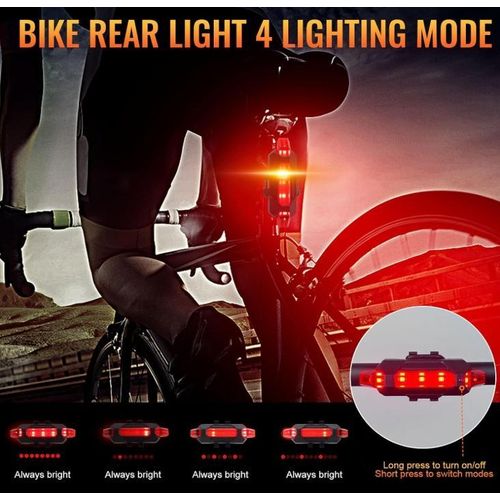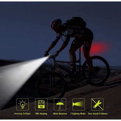 1. [Super Bright Bike Light] Equipped with 250 lumens bright lamp beads, you can enjoy safe night riding. Our headlight provides 3 modes (high/low/flash); the rear light has 5 modes (red - white - red flashing - white flashing - red and white flashing). You can easily select the desired mode with one-touch button.