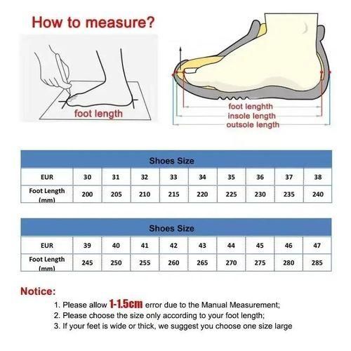 The deviation is within 0.5-1cm, and the shoe size shall be selected according to the actual situation. Whether your feet are wide or narrow,
